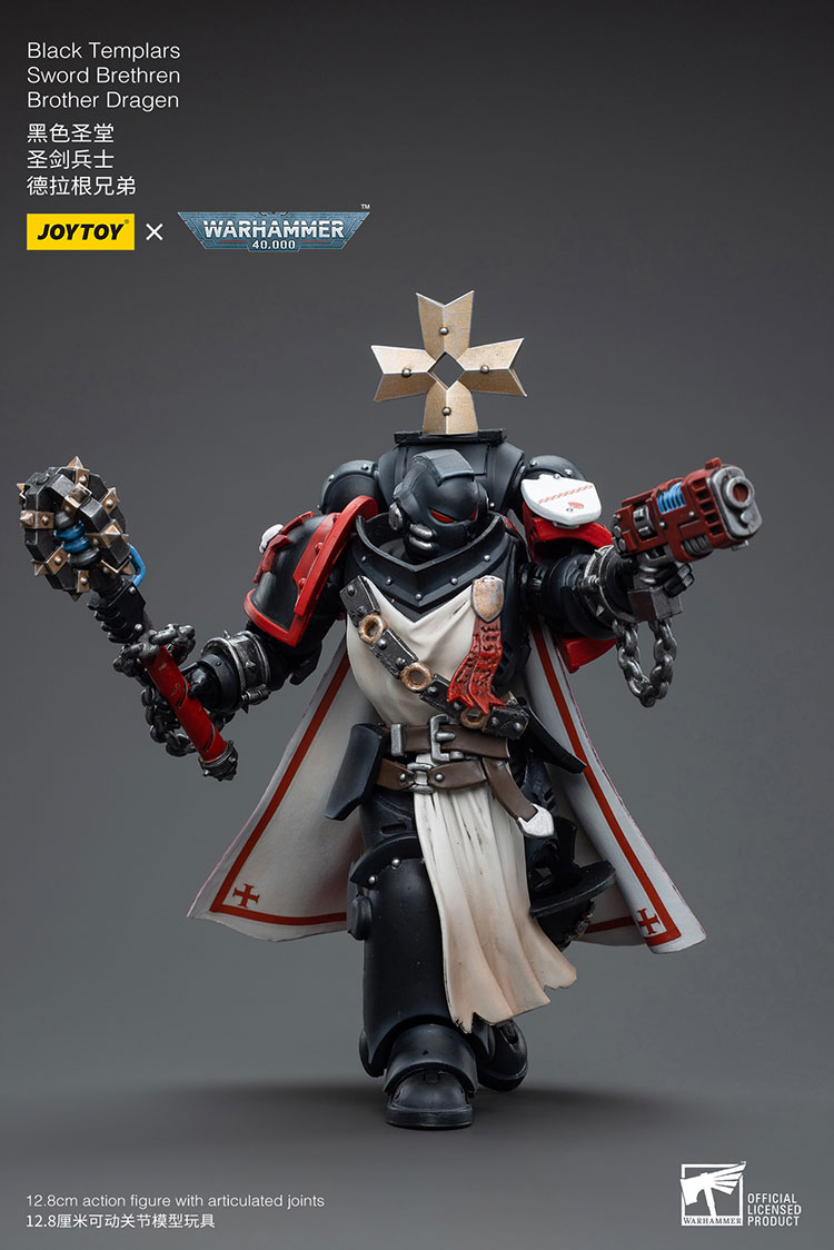 The Warhammer 40K Black Templars Sword Brethren Brother Dragen is an intricately designed and flexible collectible figurine inspired by the well-known Warhammer 40K franchise. It showcases Brother Dragen, a member of the Black Templars Sword Brethren, equipped with a range of weapons and wearing the elaborate armor of his chapter. This action figure is an essential item for fans of the Warhammer 40K universe and for collectors of action figures.